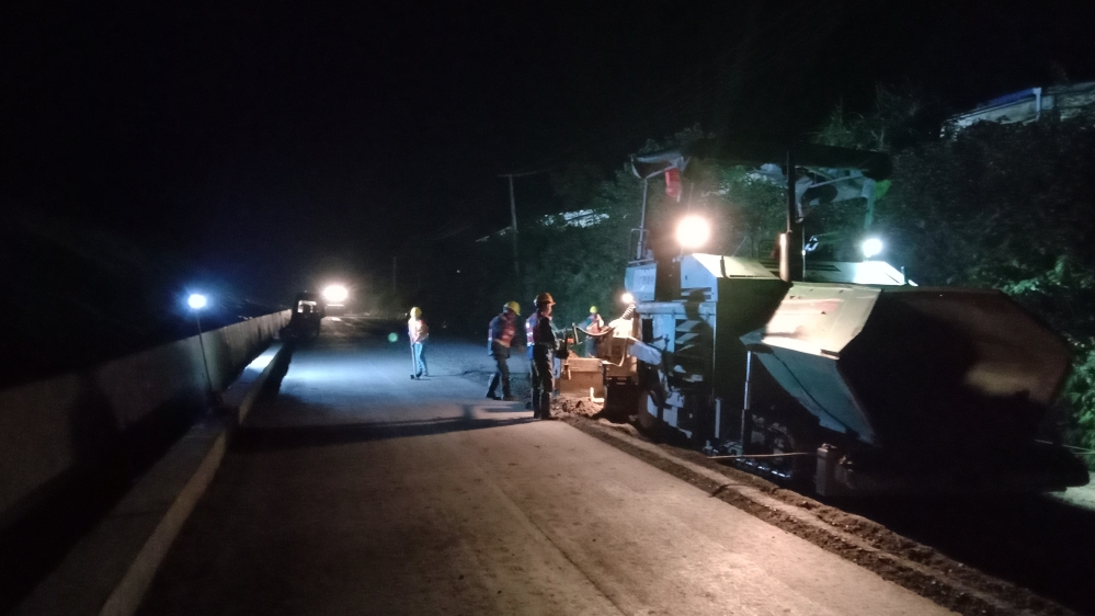 為實(shí)現(xiàn)年底流山鎮(zhèn)通鄉(xiāng)目標(biāo),建設(shè)辦督促監(jiān)理單位、施工單位加大人員設(shè)備投入,指導(dǎo)其制定第四季度施工倒排計(jì)劃,科學(xué)組織施工。按照施工倒排計(jì)劃,利用水穩(wěn)層試驗(yàn)段攤鋪積累的寶貴經(jīng)驗(yàn),11月初宜山路開始在宜州段全面展開水穩(wěn)層施工。在白天熱火朝天的施工現(xiàn)場和晚上施工照明大燈照亮的夜班加班現(xiàn)場,管理人員專人指揮調(diào)度機(jī)械設(shè)備,施工工人在水穩(wěn)層施工區(qū)有條不紊地忙碌著,仿佛是在工地“五線譜”上演奏一曲通鄉(xiāng)公路之歌。