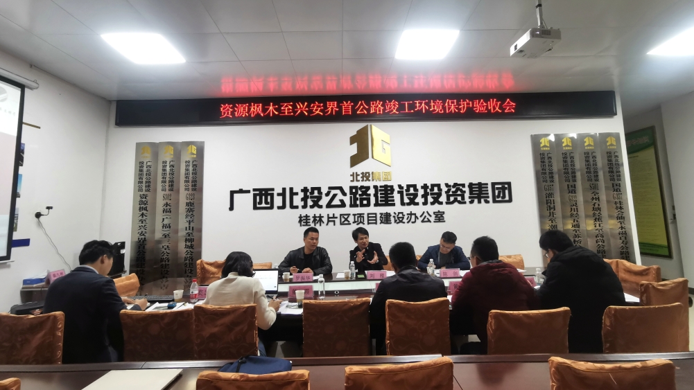 11月19日,北投公路集團組織設計、施工、監理、驗收調查單位代表和專業技術專家成立驗收工作組,對資源楓木至興安界首公路進行竣工環境保護驗收現場檢查,并召開環境保護驗收及突發環境事件應急預案評審會議。