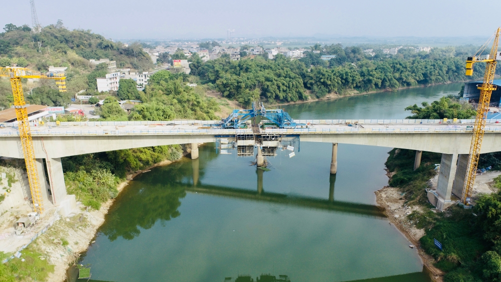 圖為北江大橋合龍儀式現(xiàn)場