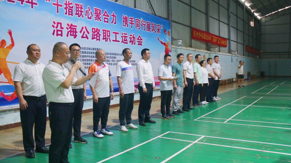集團公司副總經(jīng)理王志星,沿海公路發(fā)展中心黨委書記阮夏恒及主任余建國,北投養(yǎng)護科技集團副總經(jīng)理王其敏,中交天航南方公司黨委副書記、工會主席吳長武及紀委書記李悅來,建設銀行欽州分行黨委委員、副行長、工會主席韋永鋒及高級副經(jīng)理陸遺林,廣西路橋工程集團有限公司平陸運河項目聯(lián)合支部書記張健出席本次運動會開幕式。