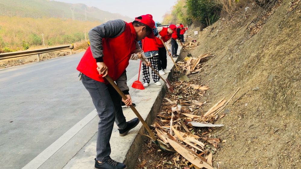 活動中,青年志愿者們身著統(tǒng)一紅色志愿服務馬甲,來到國道357田林至定安公路路段,分工協(xié)作,默契配合,拿起掃帚、鐵鏟等工具,對公路兩邊碎石、牲畜糞便、板皮和雜草及中央分隔帶內藏匿的廢紙、塑料袋等垃圾進行清理整治。經(jīng)過大家的努力,清理后的路段煥然一新,為群眾出行提供了良好的通行環(huán)境。